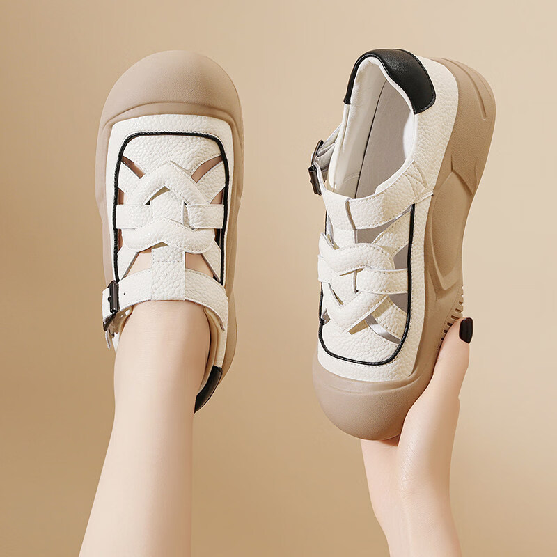 朴西复古包头洞洞鞋透气凉鞋百搭女士拖鞋2025夏季新款防滑居家户外穿 浅沙色 35-36