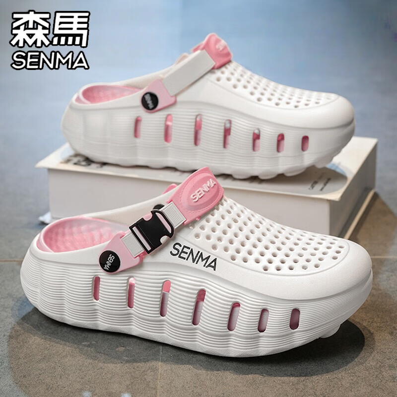 森馬洞洞鞋女款夏季外穿踩屎感防滑拖鞋两用厚底增高休闲运动沙滩凉鞋 粉色(旗舰款) 38-39