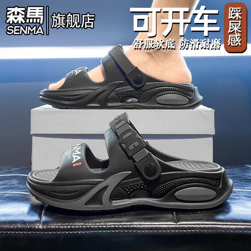 森馬拖鞋男款夏季2026新款外穿厚底踩屎感凉鞋男士开车两用运动沙滩鞋 黑灰 【基础款】 42 (42-43 同码)