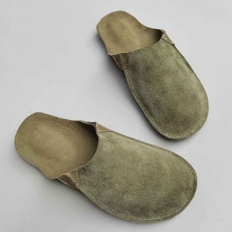 欧货反绒牛皮包头半拖鞋女2026春夏新款平底圆头外穿休闲鞋凉拖鞋