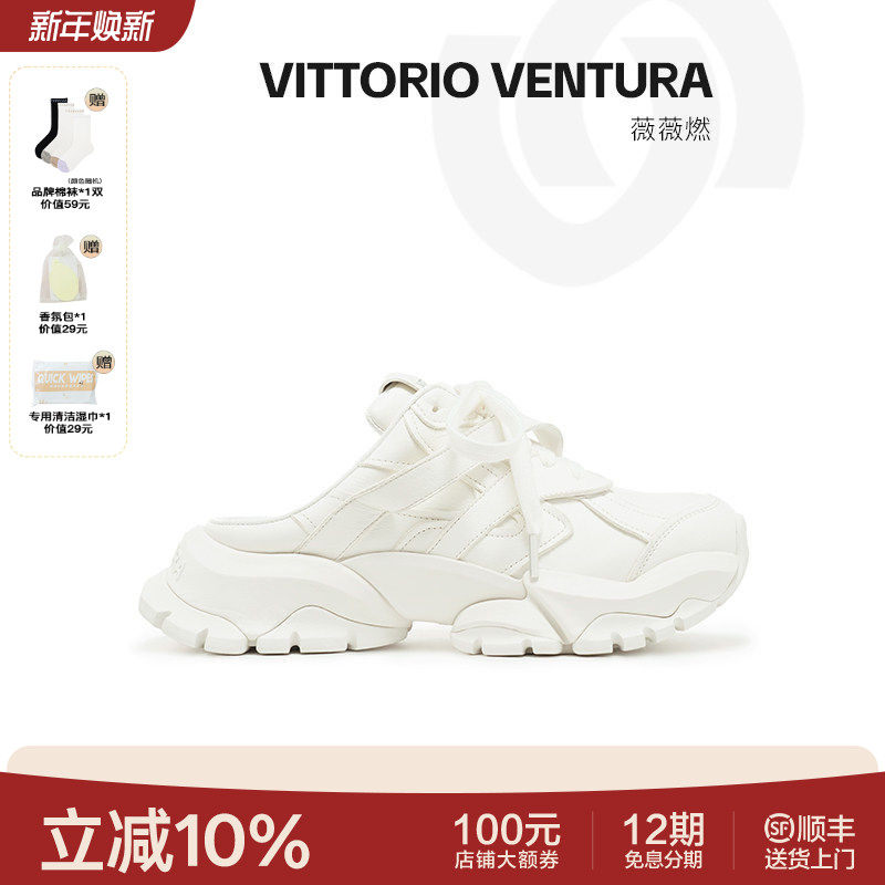 VITTORIO VENTURA薇薇燃 蛋挞厚底牛皮半拖休闲拖鞋