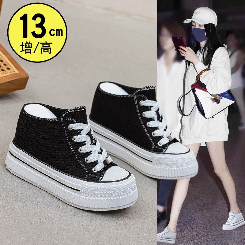 厚底包头半拖鞋女外穿内增高13cm公分一脚蹬无后跟单鞋超高跟春夏