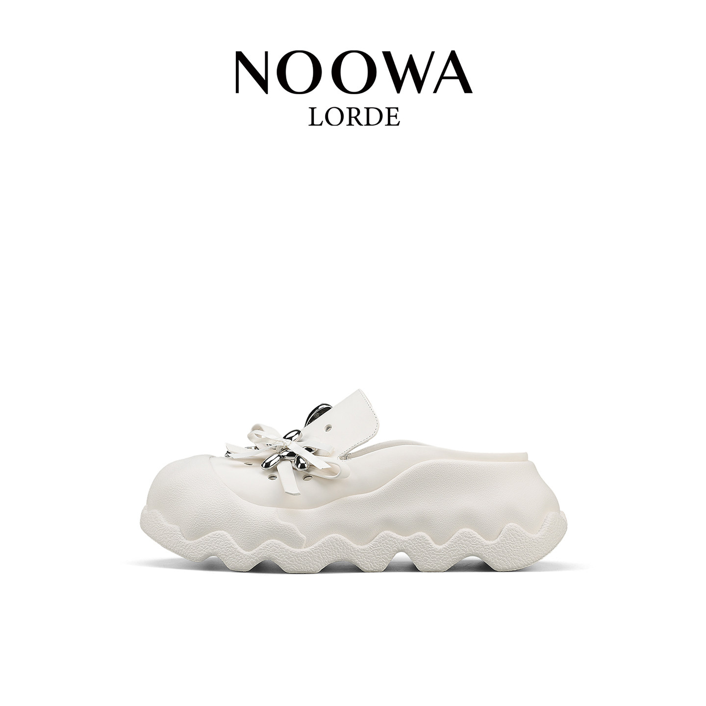 NOOWA真皮包头拖女2025秋新款小个子厚底增高轻便懒人一脚蹬拖鞋