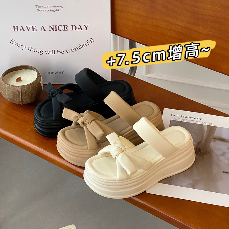 喵唔的天空2025夏季新款7cm增高厚底拖鞋女外穿轻便蝴蝶结一字拖