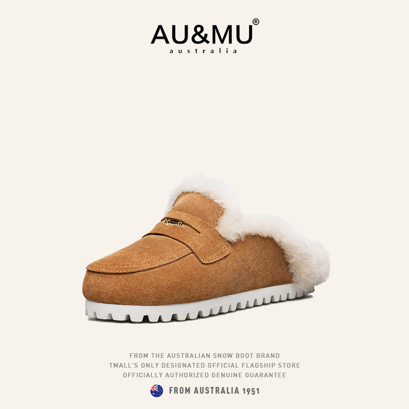 AUMU羊毛拖鞋 2025秋冬新款时尚居家保暖毛毛包头拖鞋外穿一脚蹬