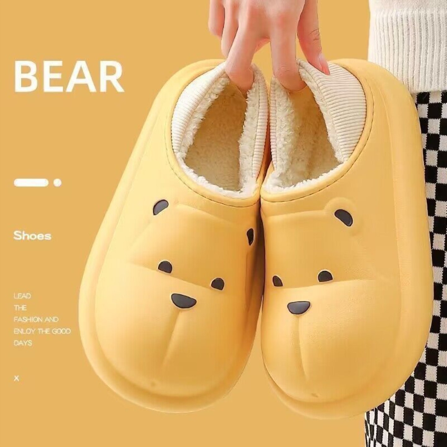 棉拖鞋女包跟秋冬季情侣室内外穿创意防滑保暖小熊月子鞋防水棉鞋