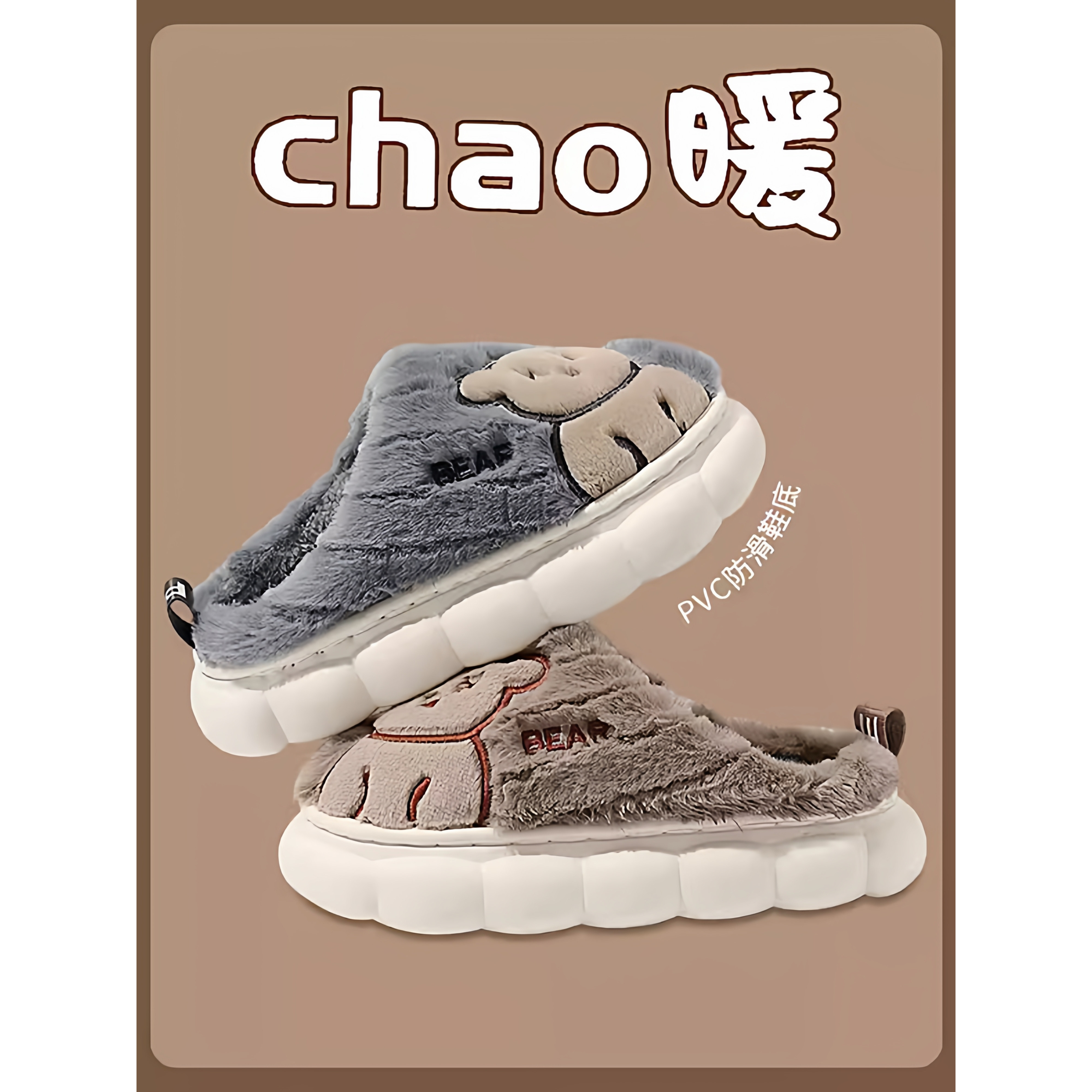 棉拖鞋女冬季室内家居新款卡通防滑毛毛加绒厚底棉拖