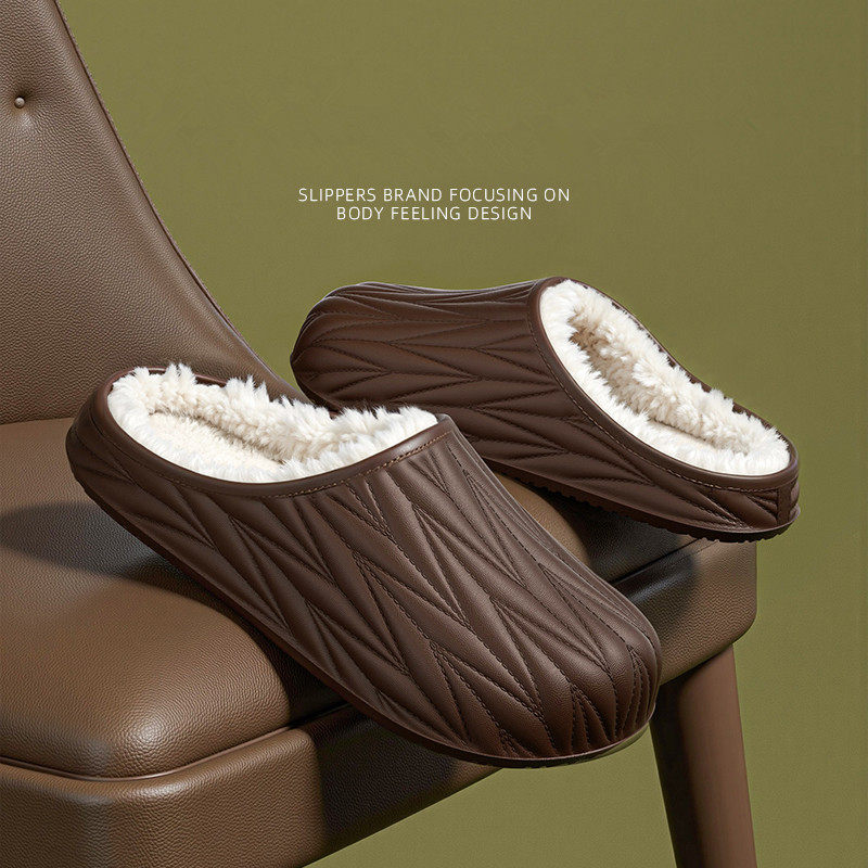 褶皱棉拖鞋女新款秋冬季室内家居防水加绒保暖居家休闲棉鞋男