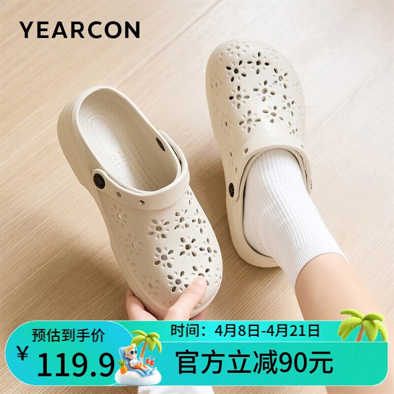 意尔康洞洞鞋花蕊户外沙滩百搭包头凉拖鞋 YW26AN1202卡其38