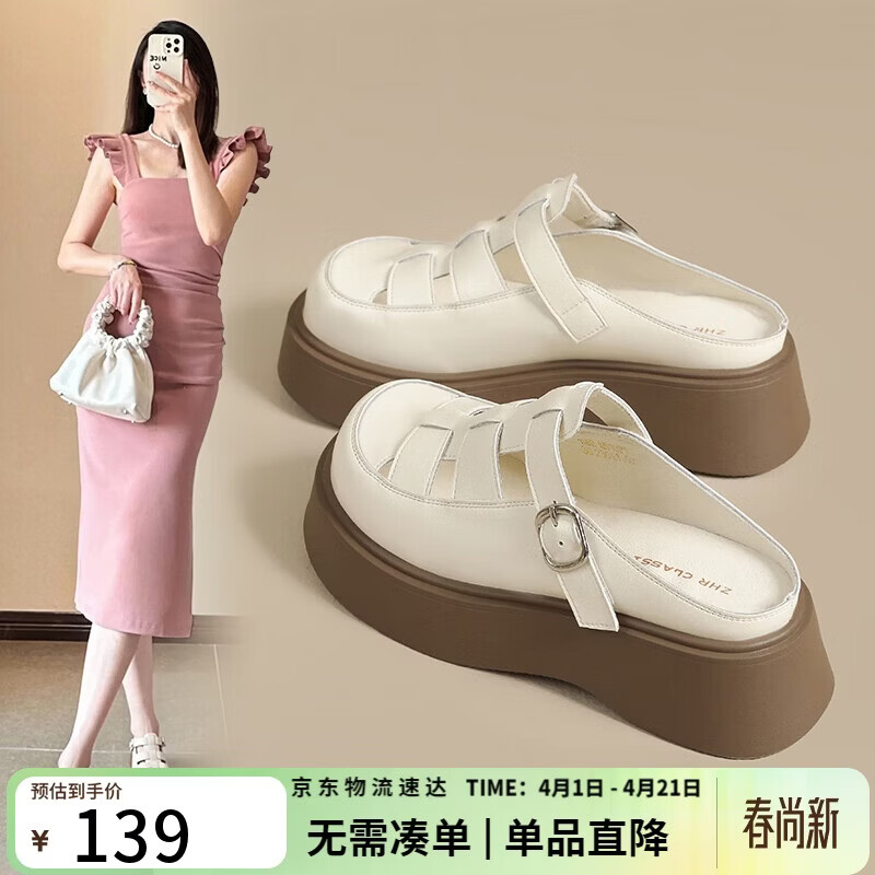 ZHR则则拖鞋女夏外穿厚底罗马编织凉鞋时尚包头厚底休闲女鞋AB109T米色38