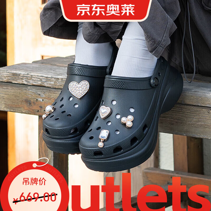 卡骆驰(CROCS)女款复古小鲸鱼洞洞鞋休闲外穿厚底包头凉拖鞋 206302-001 36-37
