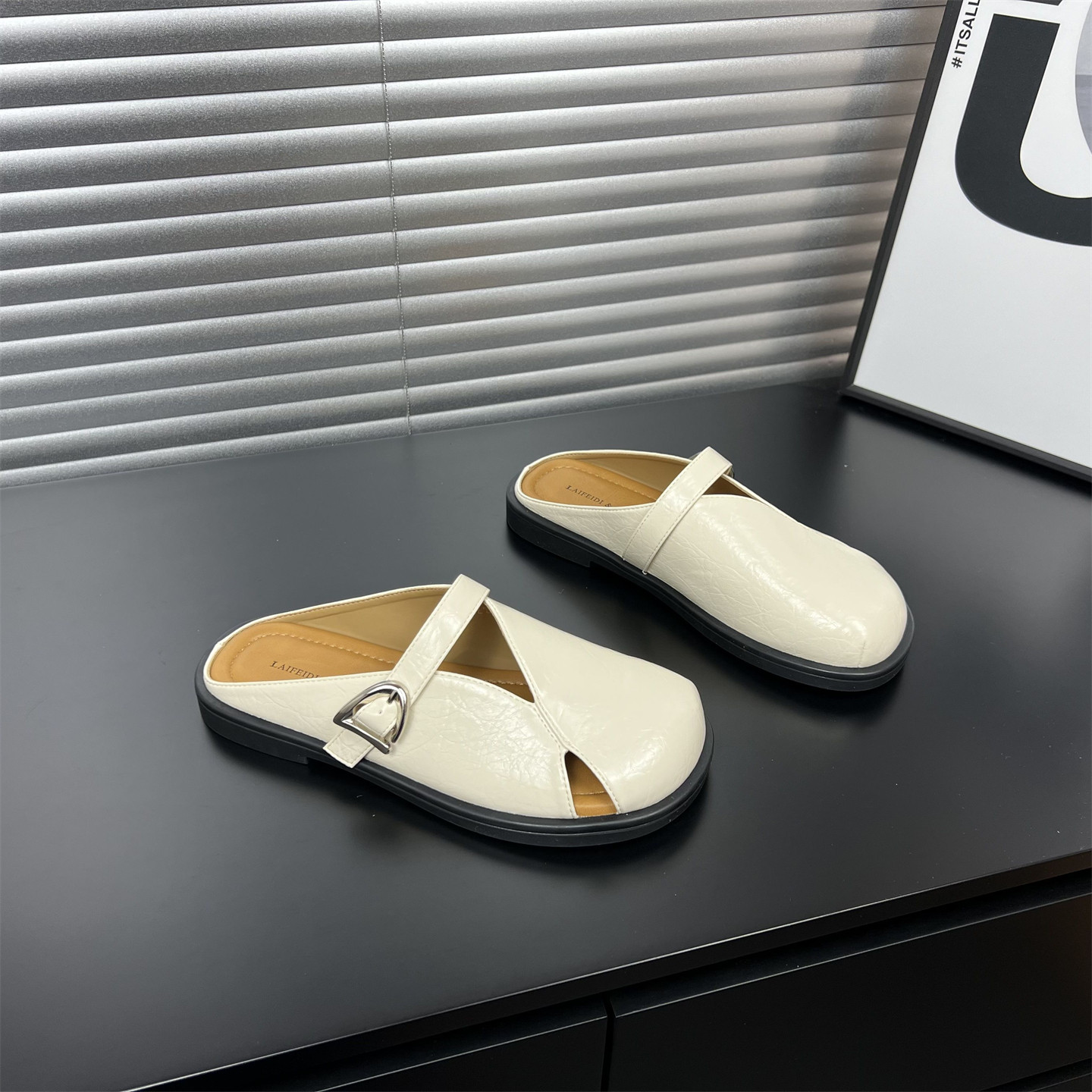 包头半拖鞋女夏外穿2025新款懒人穆勒鞋低跟尖头百搭一字带凉拖鞋