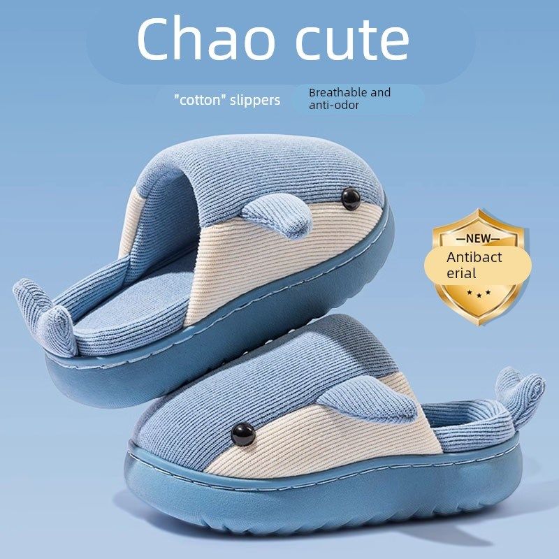 德国儿童棉拖鞋秋冬男童女童防滑软底棉拖家居室内鲸鱼可爱棉拖鞋