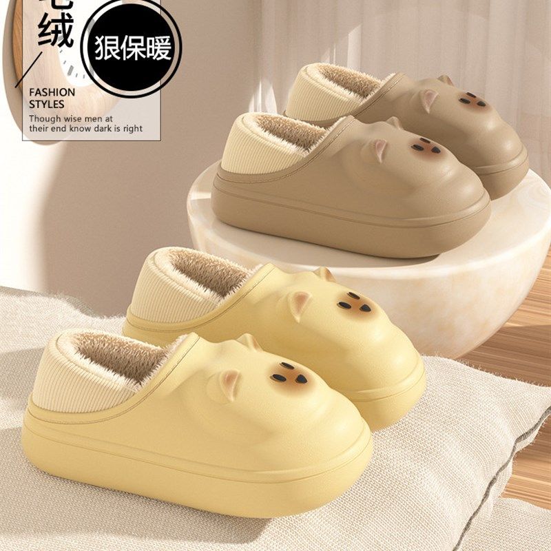 卡通棉拖鞋女2025秋冬新款室内家居保暖加厚底防滑毛绒防水棉鞋女