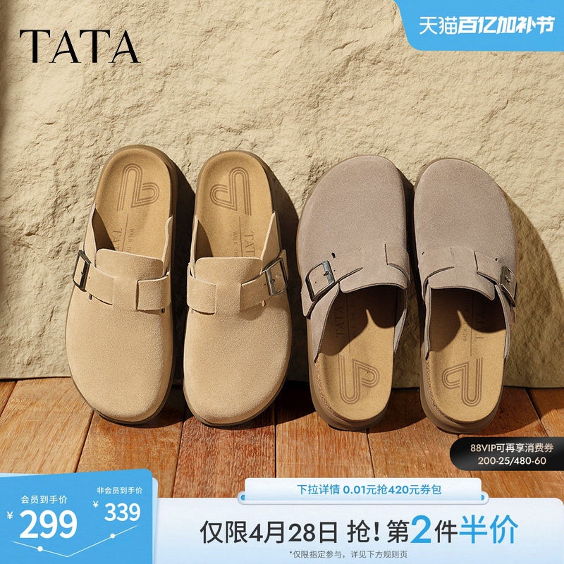 TATA他她复古棕色包头拖鞋男鞋子牛皮穆勒凉鞋夏季新款AAA01BH5