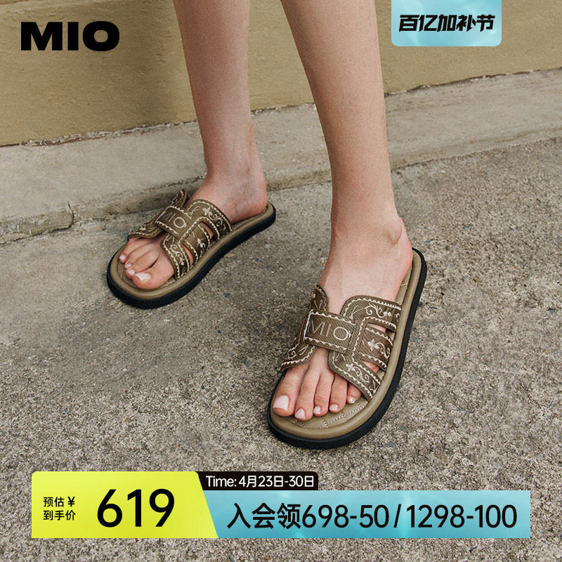 MIO米奥夏季韩版低跟拖鞋复古舒软通勤一字拖云感耐磨女鞋