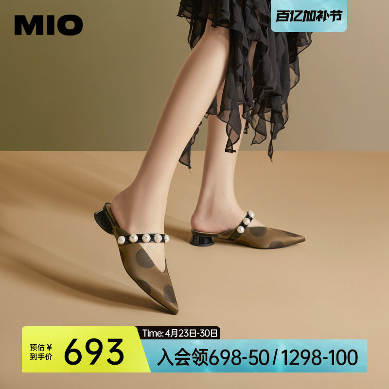 MIO米奥后空凉鞋女夏季百搭一字带拖鞋低跟时髦通勤尖头包头拖