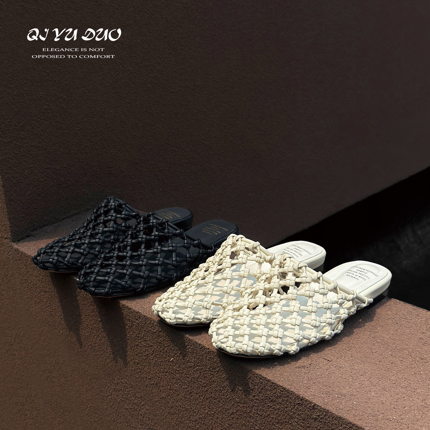 【七与多】2cm/平底编织镂空包头拖女外穿2025夏季新款度假凉拖鞋