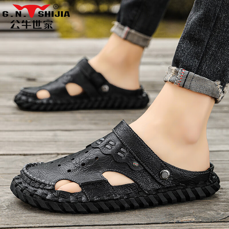 公牛世家凉鞋男2026新款夏季外穿两用沙滩鞋镂空透气百搭休闲凉拖鞋子