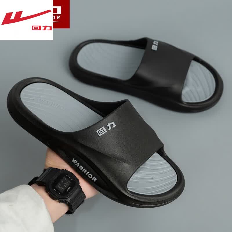 回力男士拖鞋男夏天2026新款浴室防滑不捂脚耐磨大码外穿运动凉拖鞋子 黑灰色【柔软舒适】 40 :/41码