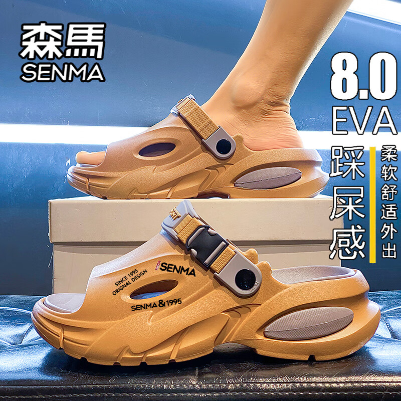 森馬拖鞋男夏季新款踩屎感防滑运动凉鞋男士外穿厚底增高大码沙滩凉拖 橘色 41 (40-41同码)