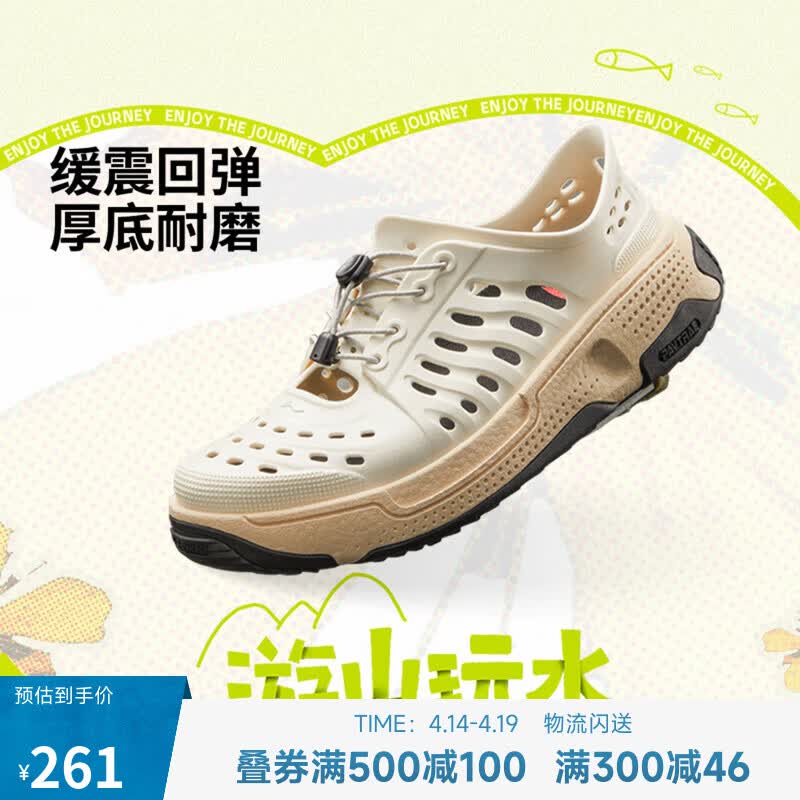 李宁中国李宁盘古trek潮流凉拖鞋男女同款轻量高回弹厚底增高透气 米白色-2 42
