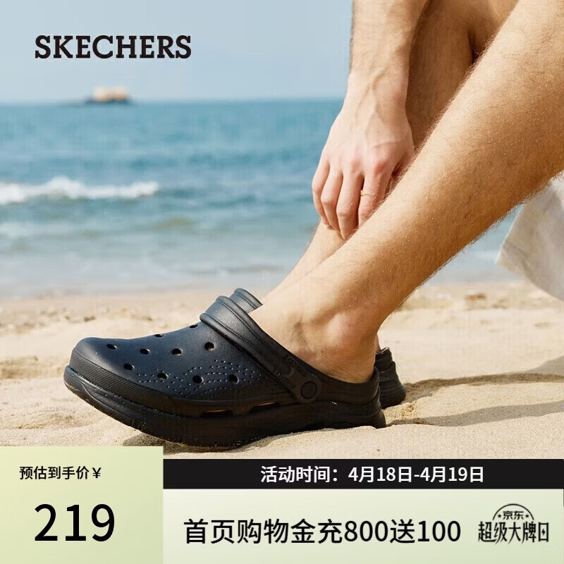 斯凯奇(Skechers)夏季男士洞洞鞋外穿软底包头凉鞋拖鞋轻便防滑沙滩鞋243160