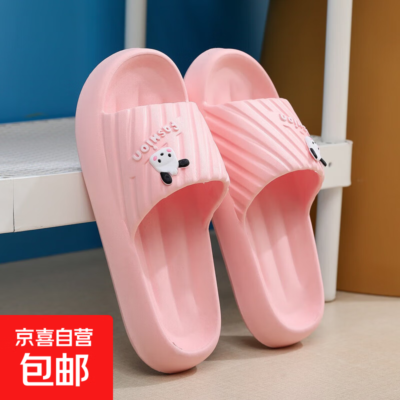 夏季新款拖鞋女踩屎感室内居家浴室舒适外穿女士凉拖鞋卡通一字拖 粉色 38-39