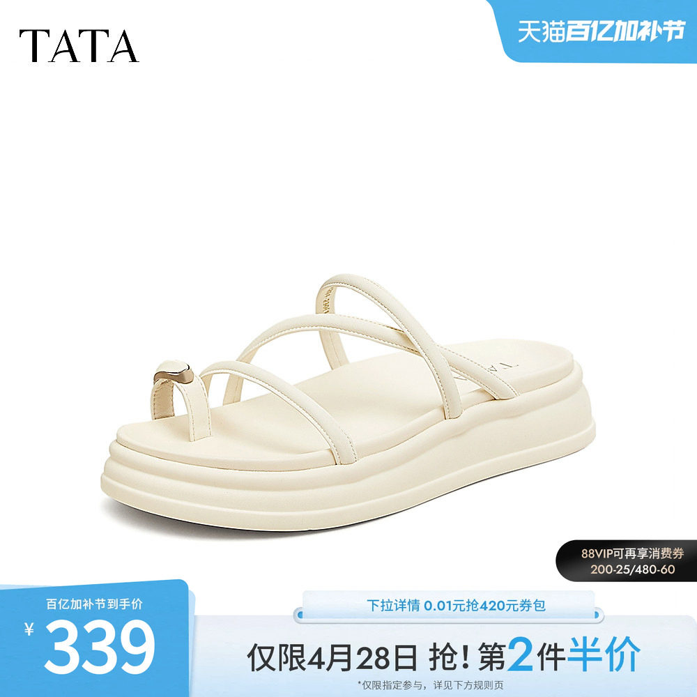 TATA他她休闲厚底拖鞋女鞋一字子运动沙滩凉拖通勤夏新款CXZ01BT5