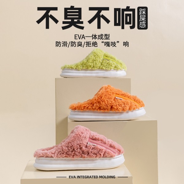 棉拖鞋卡通可爱少女款秋冬季厚底防滑男居家用新款可外穿毛毛拖鞋