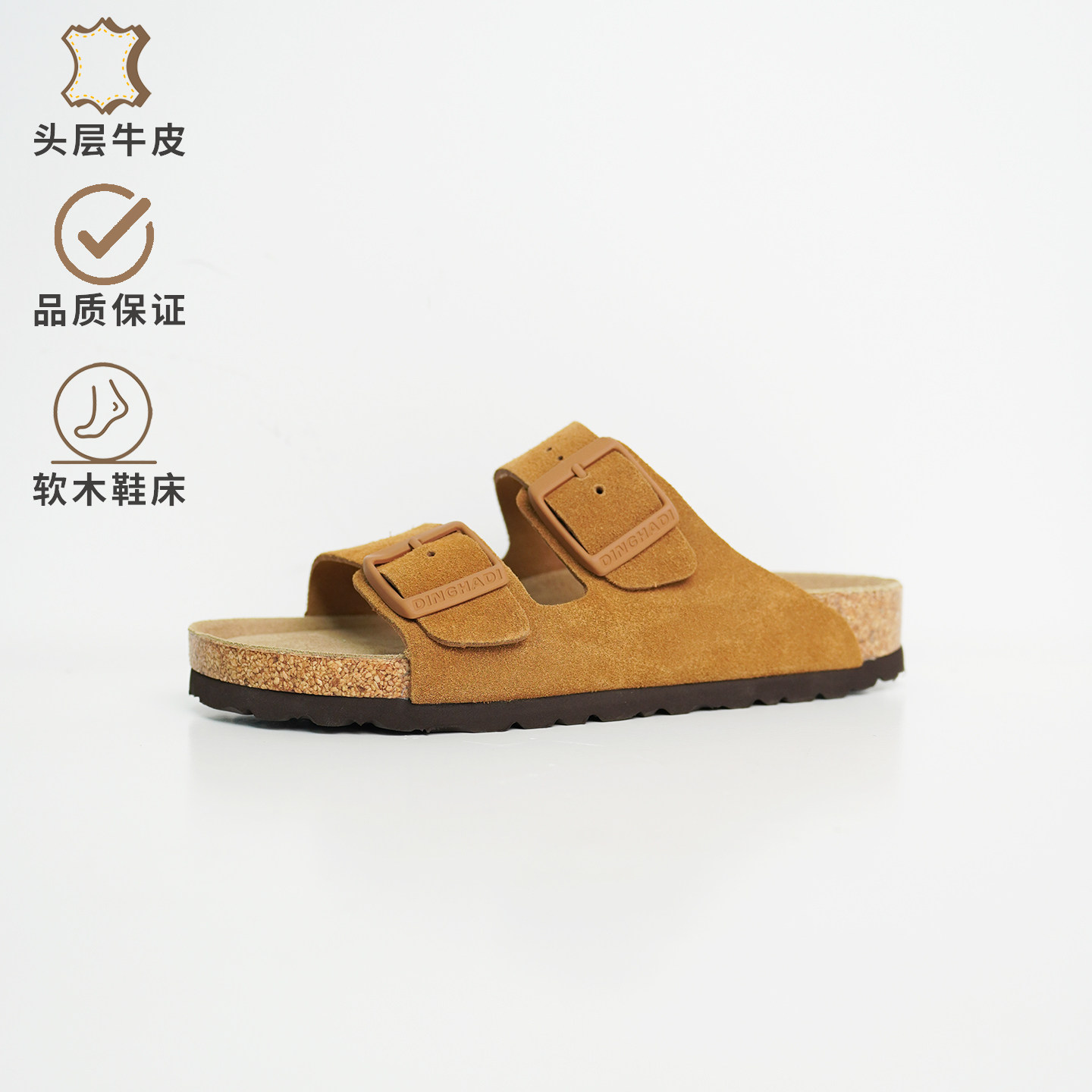 头层牛皮二字拖鞋外穿勃肯拖鞋女磨砂软木凉鞋勃肯防滑休闲情侣
