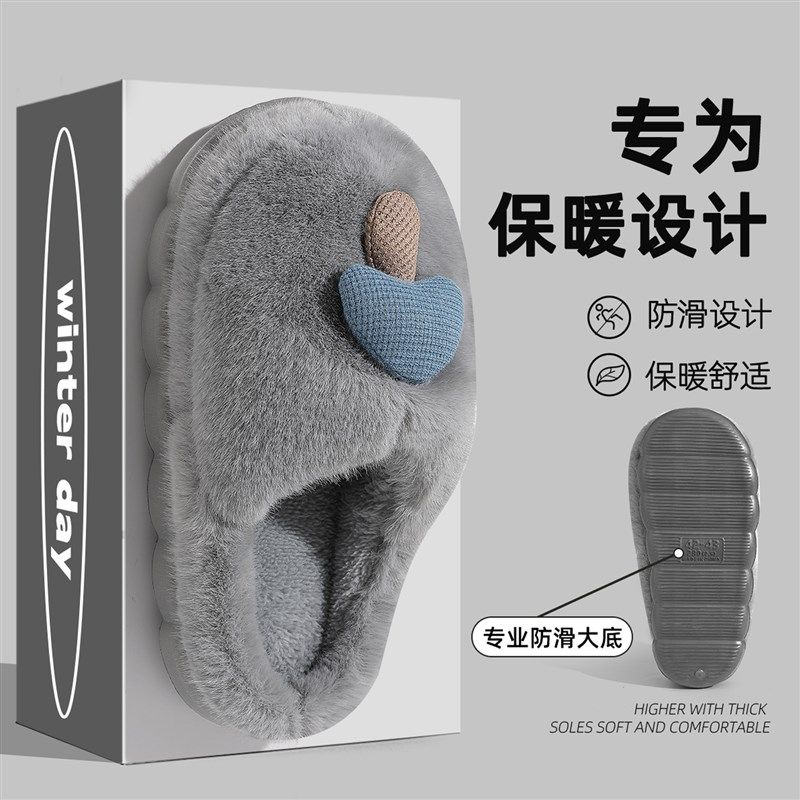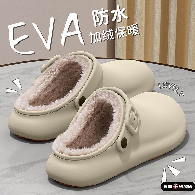 冬季防水防滑女士拖鞋新款室内家居厚底保暖加绒棉拖鞋外穿毛拖鞋