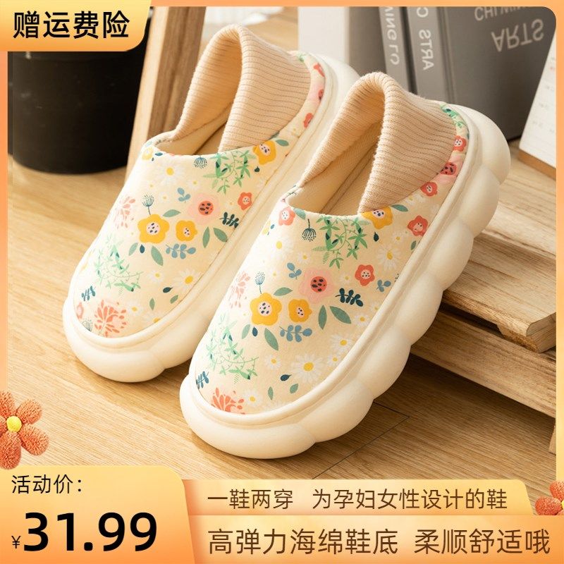 月子鞋产后秋冬季包跟棉拖鞋女春秋款室内居家防滑透气轻便厚软底