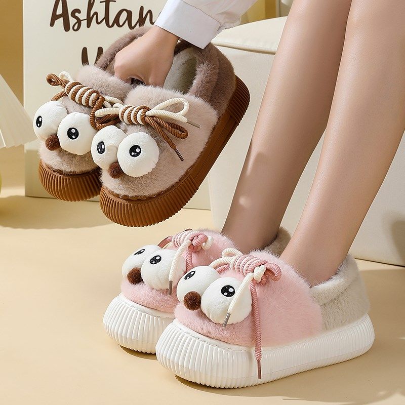 萌趣大眼棉拖鞋秋冬季室女款公主风内家居保暖鞋防滑加厚包跟棉鞋