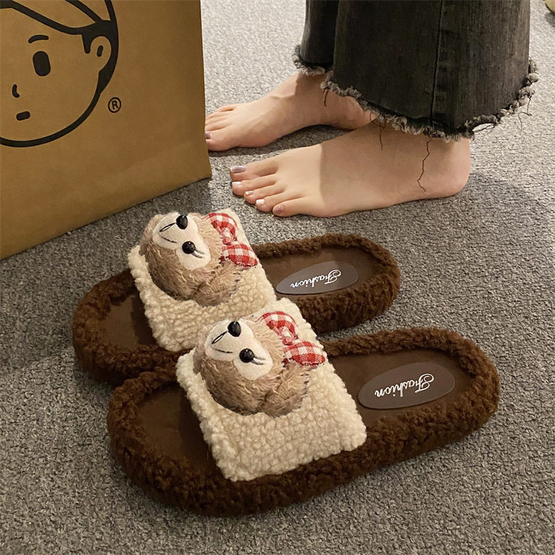 日本品质卡通可爱毛毛拖鞋女2025新款秋冬季韩版舒适居家防滑棉拖