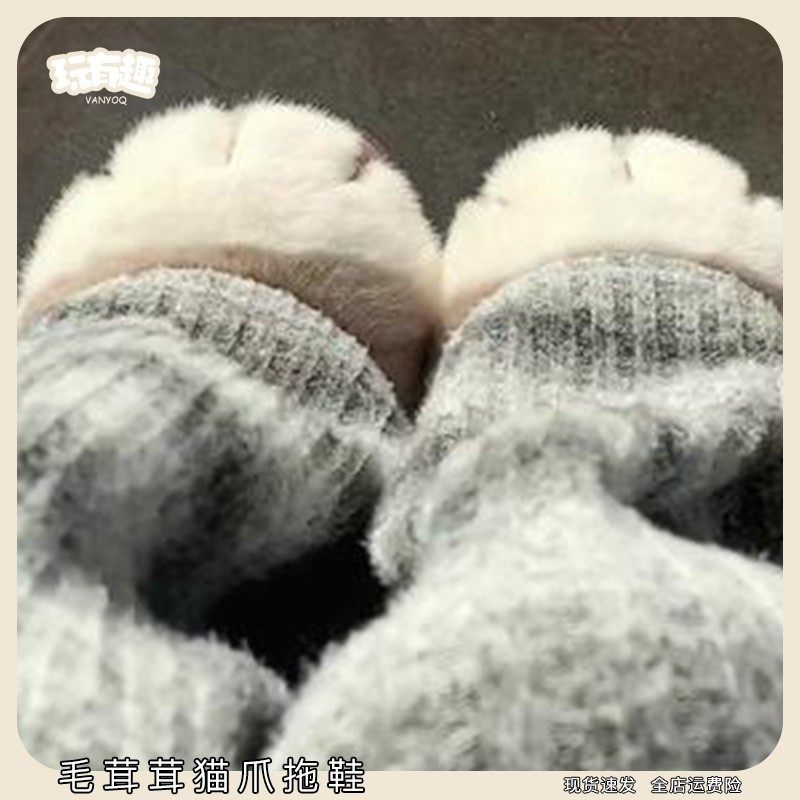 猫爪拖鞋2025爆款网红可爱毛茸茸冬季毛绒棉拖外穿男女款新款