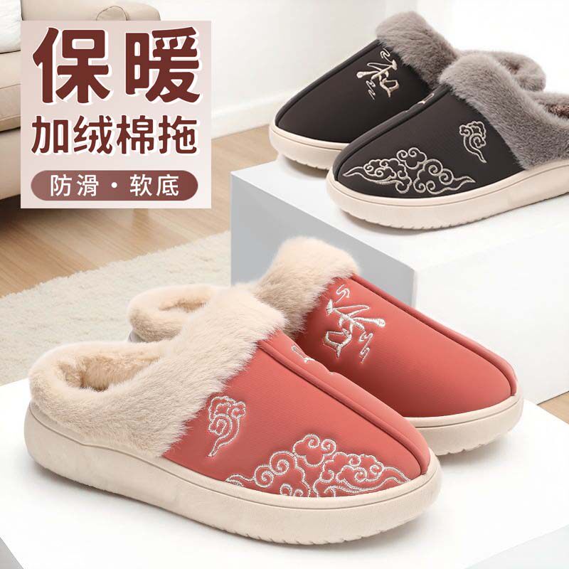 泰和源老北京布鞋新款女棉拖鞋冬季加绒加厚保暖男女同款居家拖鞋