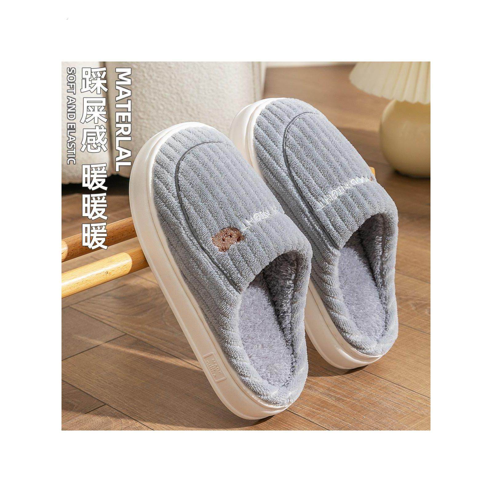 高级感棉拖鞋情侣秋冬季室内棉拖家居防滑厚底毛毛绒保暖情侣加厚
