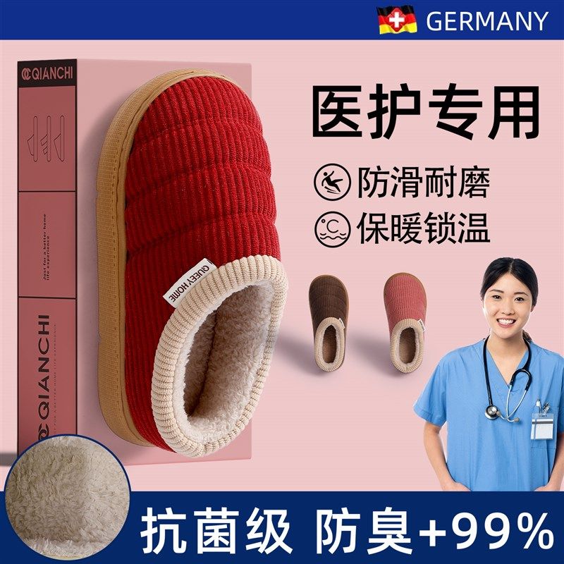 医护级棉拖鞋女冬季室内抑菌防臭防滑静音厚底包跟2新款棉鞋