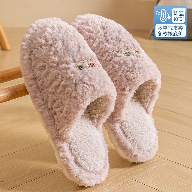 冬季防水防滑女士拖鞋新款室内家居厚底保暖加绒棉拖鞋外穿毛拖鞋
