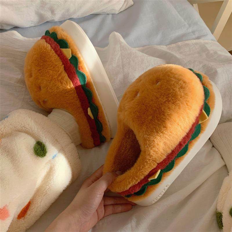 全包跟防滑保暖情侣家居用毛毛鞋2025冬季新款棉汉堡趣味拖鞋男女