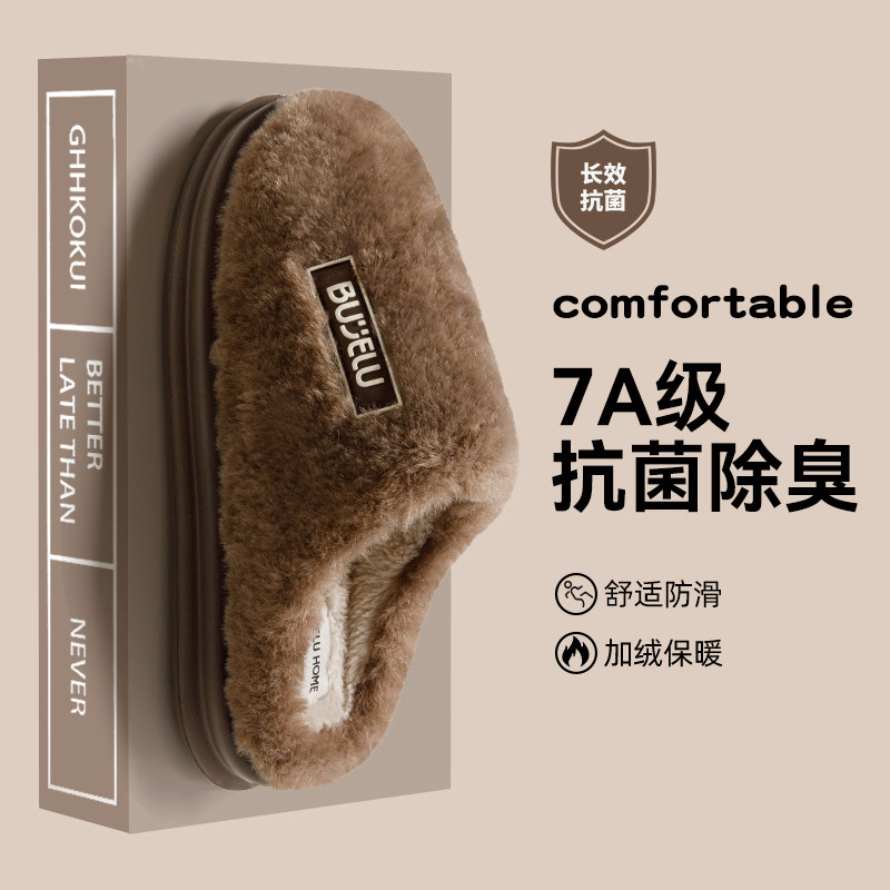 速发季绒棉拖鞋男士秋冬毛室内家款防滑2025新居除臭保暖棉拖男款