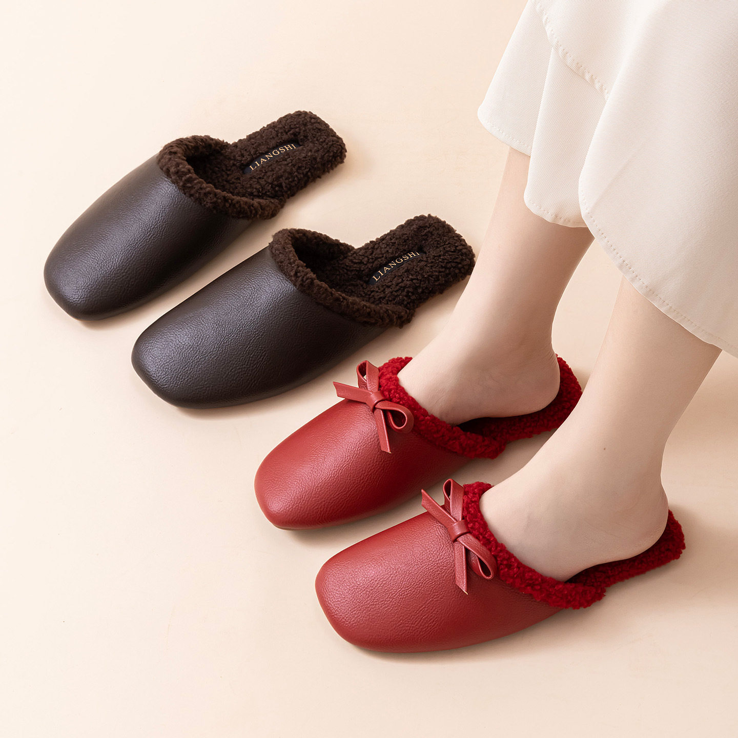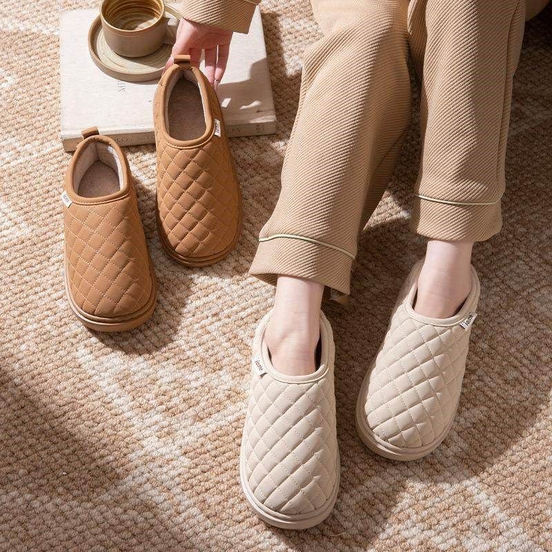 梁氏秋冬轻奢保暖棉拖鞋男女情侣室内地板防滑鞋皮轻奢加绒牛筋底