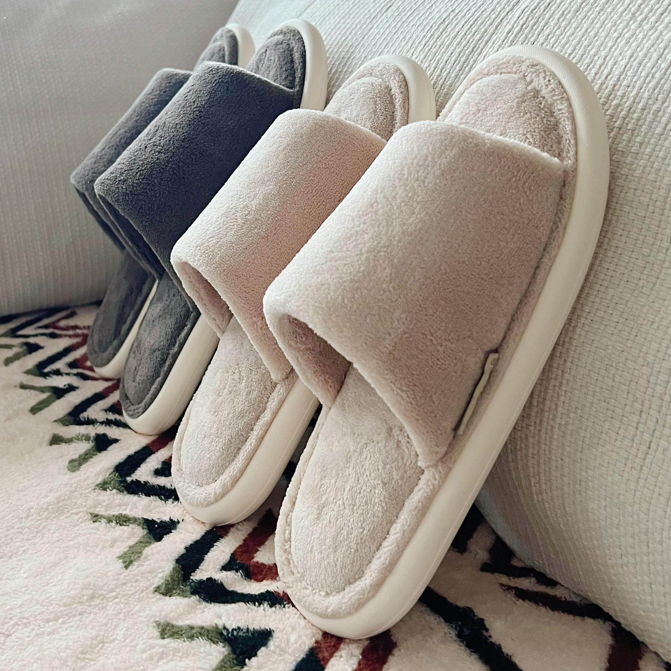 日式木地板静音开口棉拖鞋女秋冬家居室内软底情侣防滑男大码