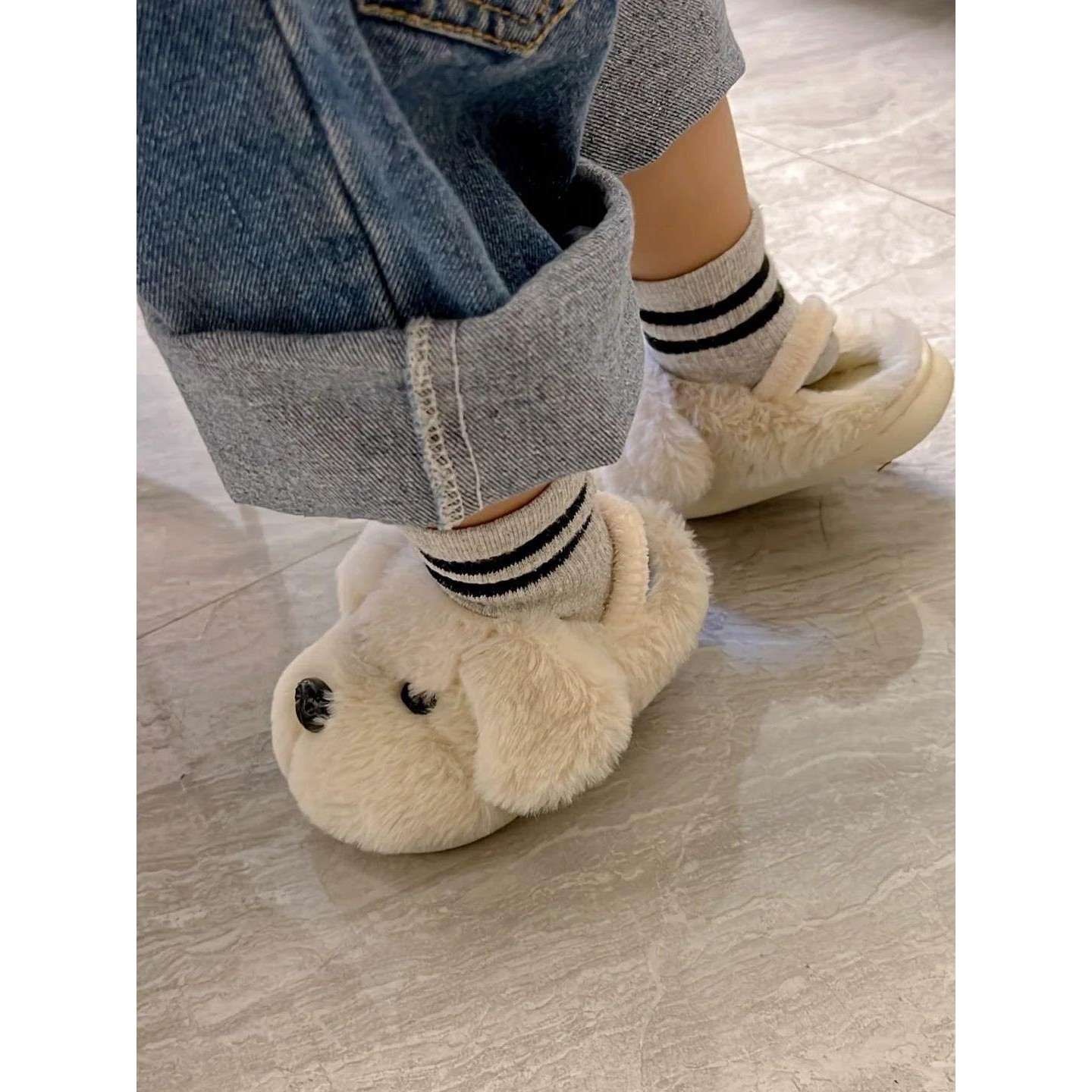 小狗儿童棉拖鞋保暖室内家居可爱加厚包跟加绒防臭冬季宝宝棉拖鞋