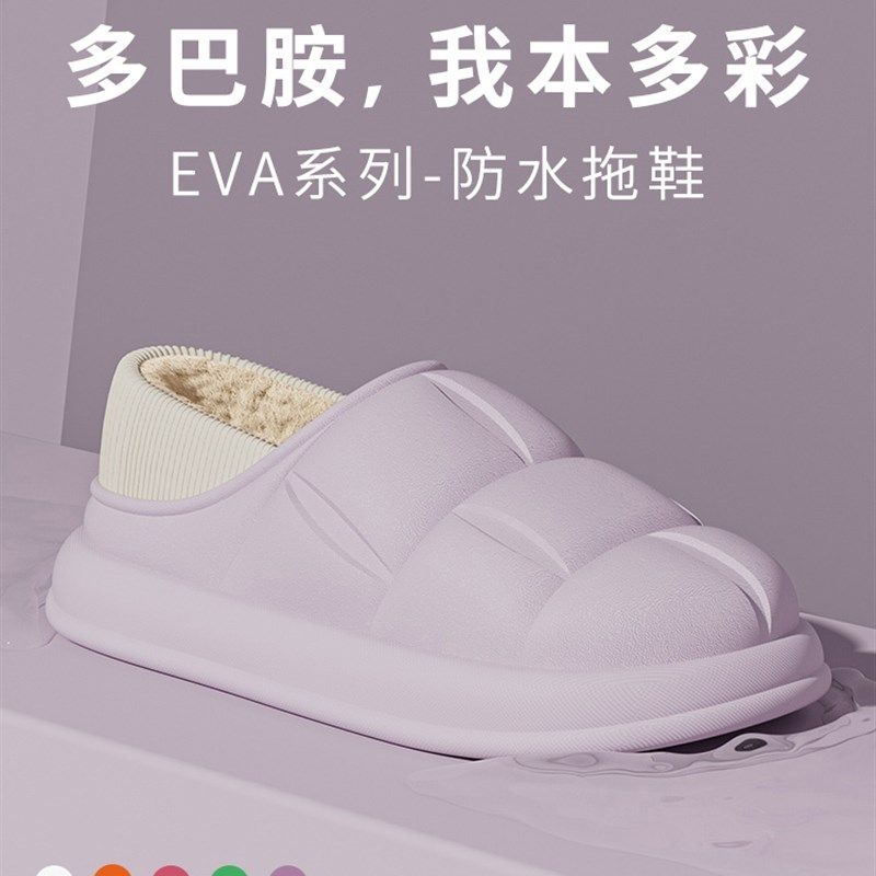 包跟棉拖鞋女士秋冬季2024新款室内居家防水防滑厚底保暖棉拖鞋男