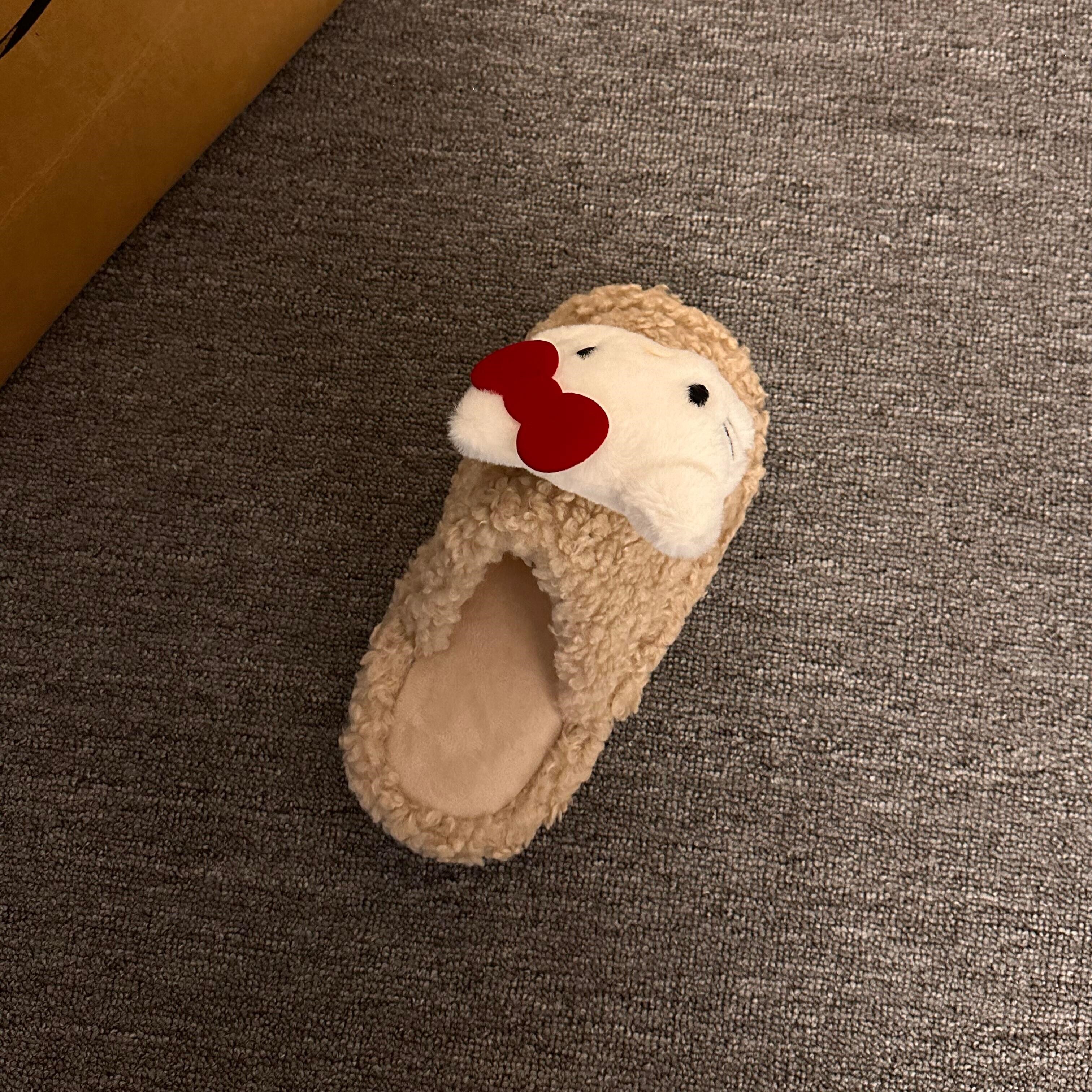 日本品质2025新款可爱红苹果棉拖鞋女冬季少女心毛毛鞋居家地板防