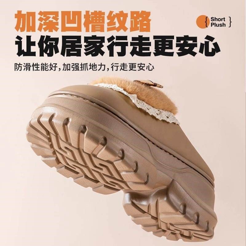 防水棉拖鞋女冬季2025新款室内家居防滑厚底毛绒保暖踩屎感棉拖男