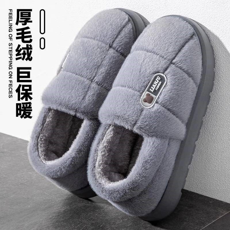 慈溪棉拖鞋男款秋冬季加绒室内家居家用冬天厚底保暖棉鞋女士室内