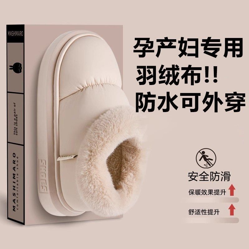 产后月子鞋冬季全包跟孕妇防滑保暖外穿防水加绒女士棉拖鞋羽绒天